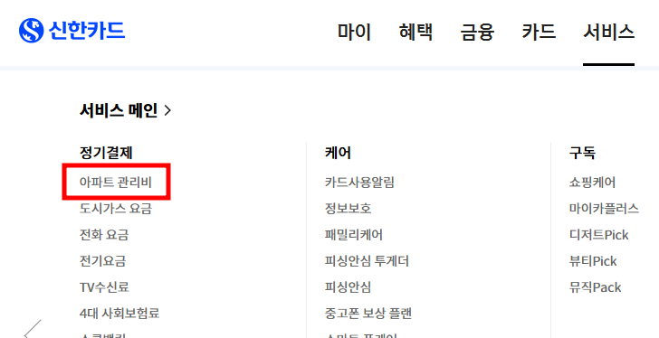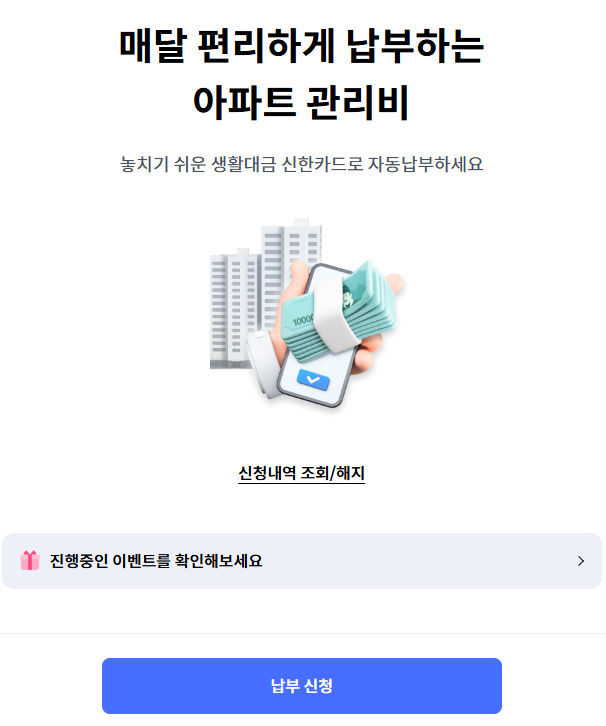 🔍 예시: 신한카드 앱 → [혜택] → ‘공과금 자동납부’ → 관리비 → 단지명 입력 후 조회
