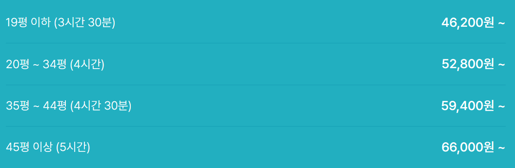 - 19평 이하 → 46,200원~ (3시간 30분)