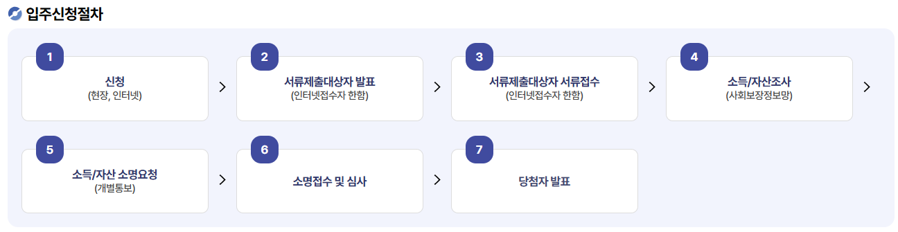 - 청약 신청: 현장 또는 인터넷 청약 (모집공고 확인 필수)