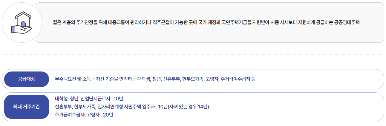 국토교통부와 LH 등이 시행하며, 직주근접을 통한 생활 안정과 주거비 부담 완화를 목표로 합니다.