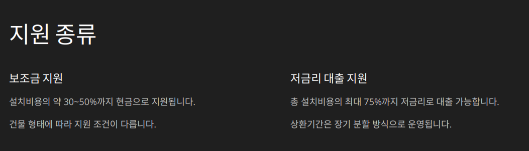 - 설치비용의 약 30~50%까지 현금으로 보조