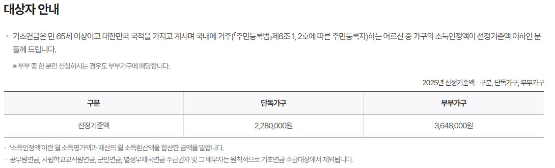 ✅ 기초연금 수급 자격
