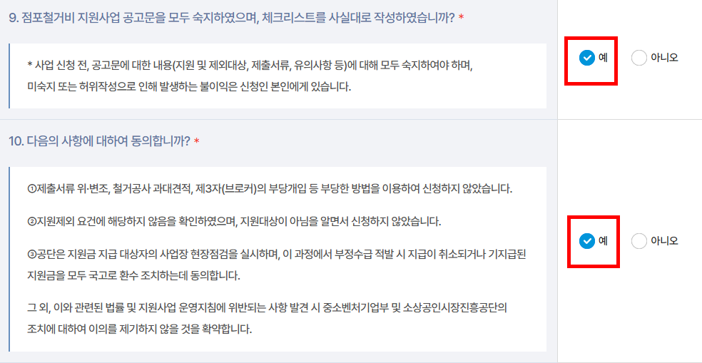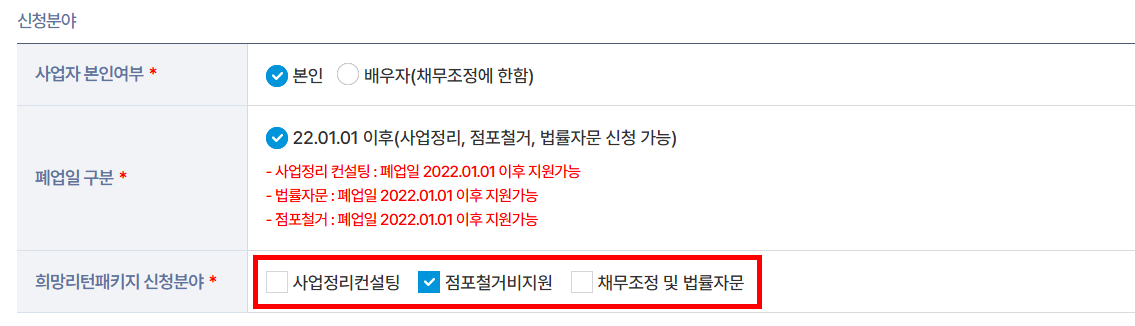 - 폐업일 기준으로 사업이 이미 종료되어 있어야 하며, 자가 소유 점포는 지원 대상이 아닙니다.