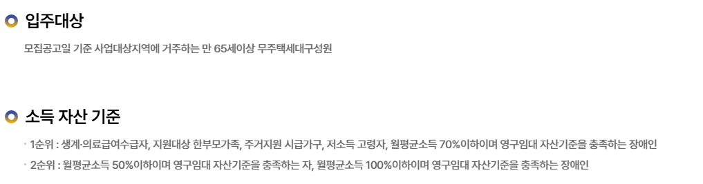 | 국민임대주택 | 일정 소득 이하의 노인도 신청 가능 | 시세의 30~50% |